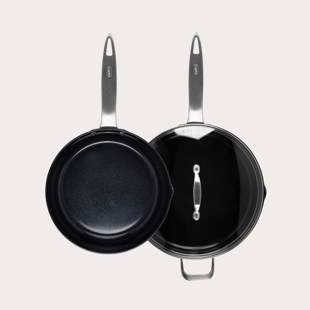 - Durable carbon steel provides even heat distribution.