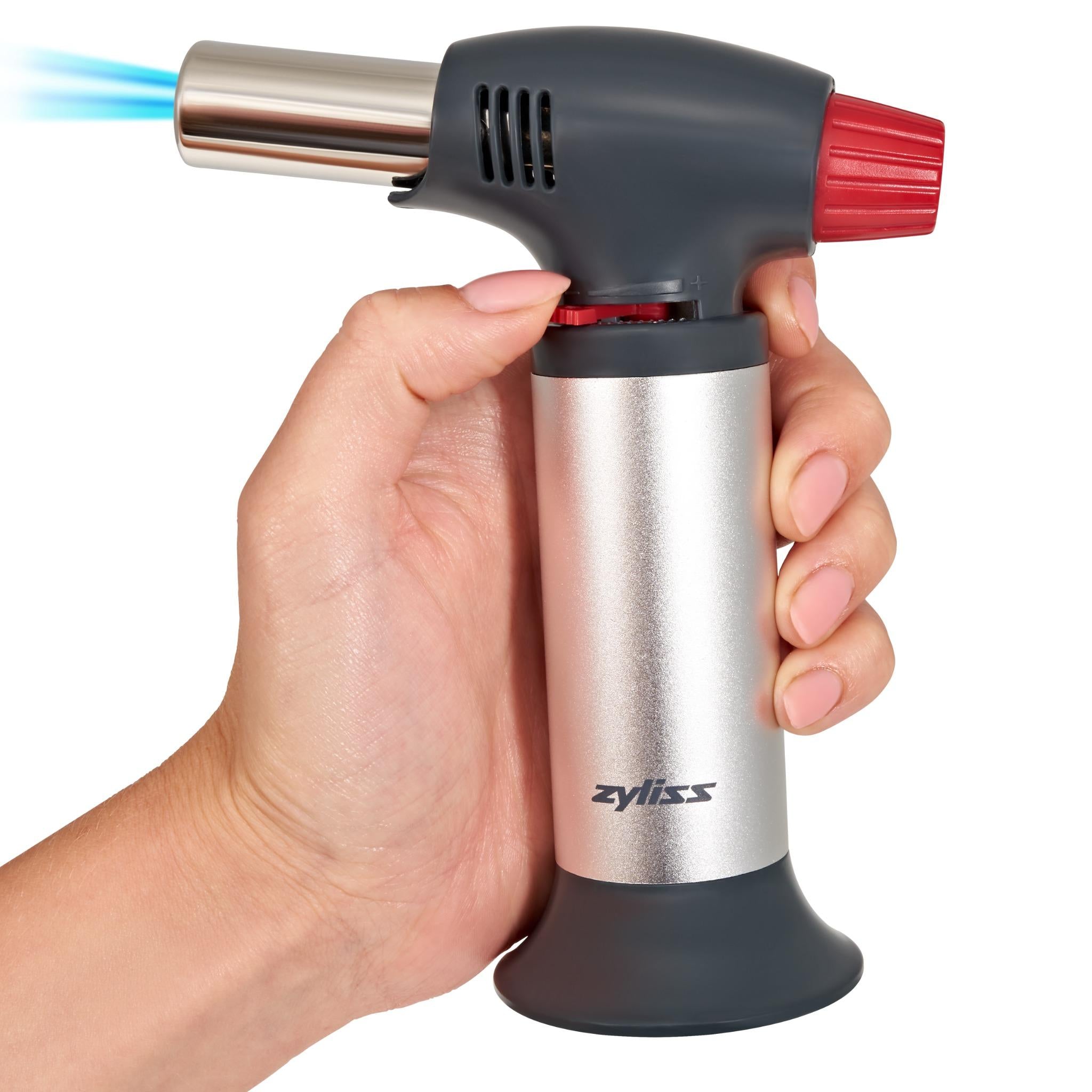 Achieve professional-grade cooking results with the Zyliss Kitchen Blowtorch. Whether you're caramelizing crème brûlée, searing steaks, melting cheese, or charring vegetables, this torch provides precise, adjustable flame control for the perfect finish. The push-button ignition ensures quick and effortless lighting, while the ergonomic handle offers a comfortable grip for easy operation. A built-in safety lock prevents accidental ignition, making it a reliable choice for every kitchen. Compatible with standard butane gas canisters (sold separately), this versatile blowtorch is an essential tool for home cooks and chefs alike.