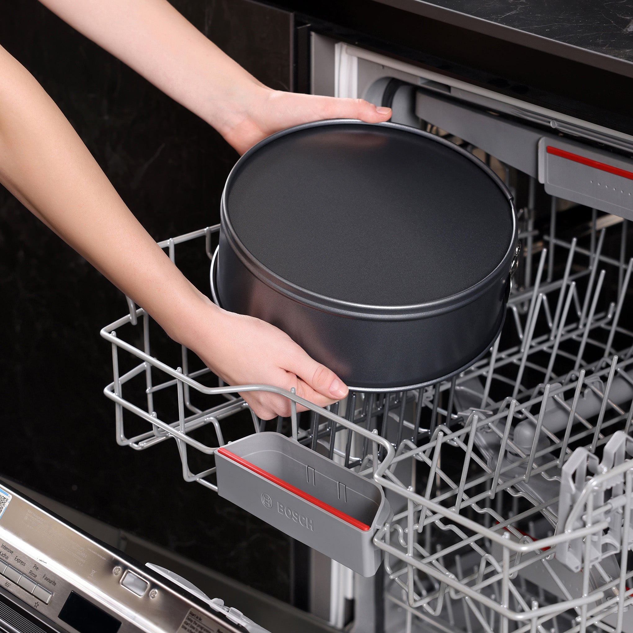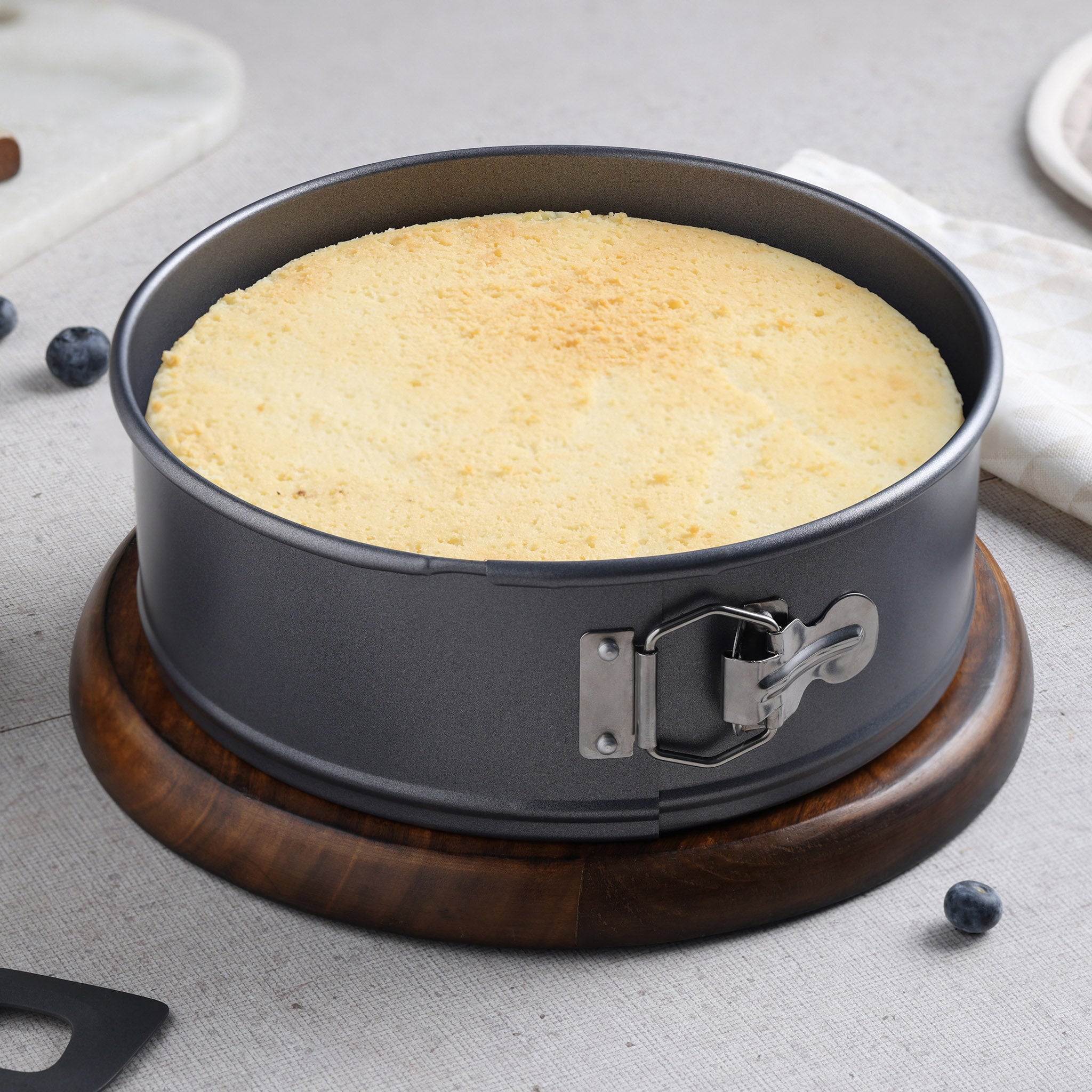 The springform design allows the sides to release smoothly, helping prevent damage when removing baked goods. Made from durable carbon steel with a high-quality non-stick coating, this cake pan ensures easy food release and simple cleanup after every bake.