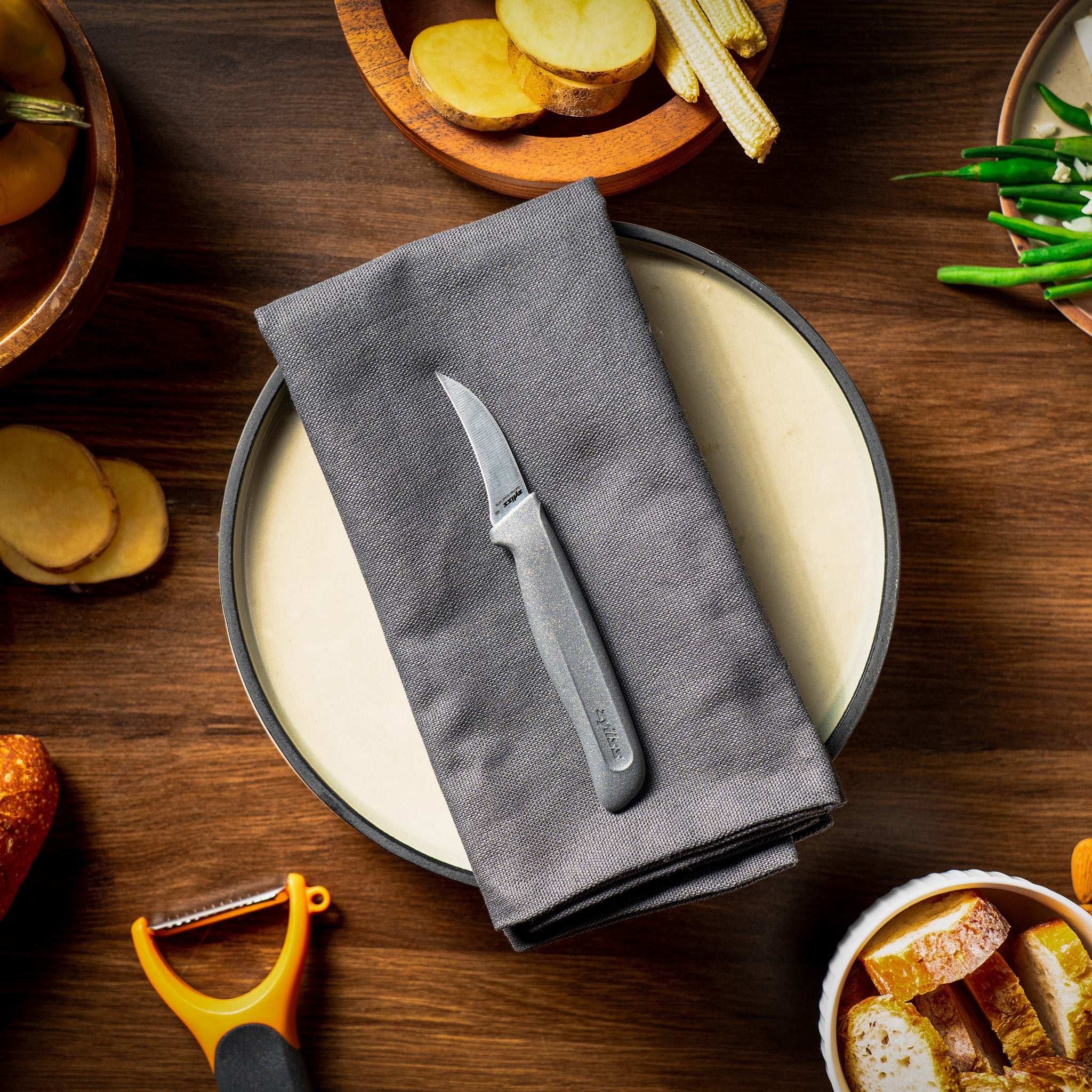 Meet the Zyliss Peeling Knife, a precision tool that blends functionality with sustainability. Its short, curved blade effortlessly peels everything from potatoes to kiwis with care. Dishwasher safe and equipped with an easy-insert blade guard for secure storage, this knife features an innovative, ergonomic handle design using an eco-friendly wheat straw material, reducing plastic usage by up to 20%. Enjoy peace of mind with a 5-year Zyliss guarantee.